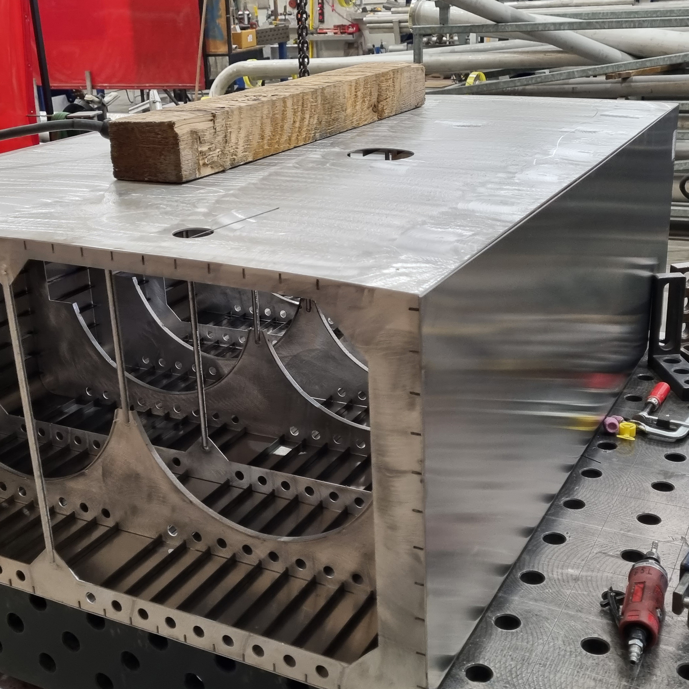 Moderne technologieën zoals CNC-lasersnijden werden ingezet om het model te produceren. Het gebruik van TIG-laswerk voegde niet alleen precisie toe, maar versterkte ook de structurele integriteit, waardoor het schaalmodel een getrouwe weergave is van de kracht en finesse van een binnenvaarttanker.